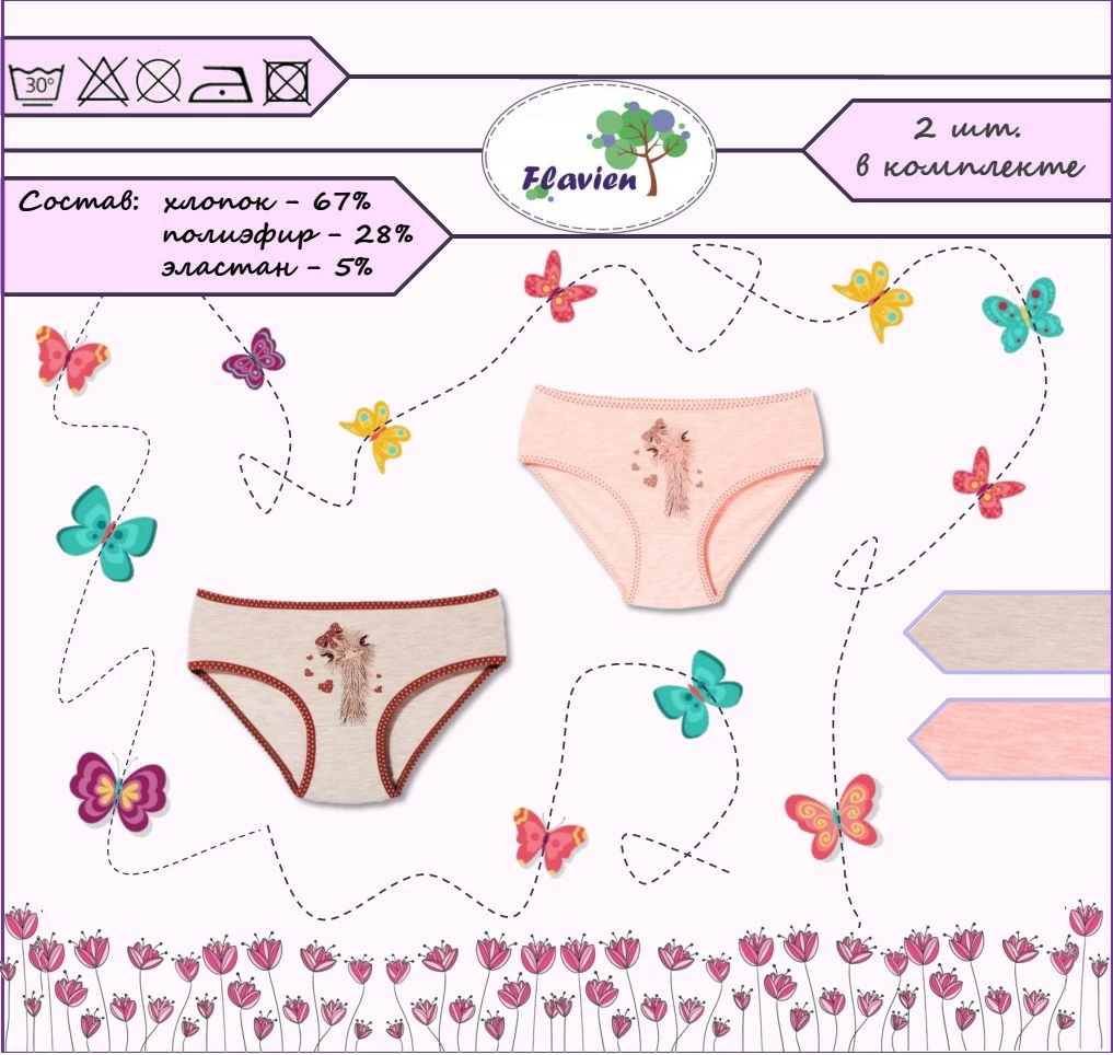 Трусики для девочки, комплект 2 шт., Flavien, с рисунком